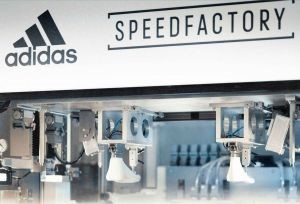 In a production hall as clean as a hospital, pea-size beads of white plastic pour into what looks like a minivan-size Adidas shoe box, complete with 3 white stripes down the side. That’s fitting, because in just a few seconds the machine heats and molds the stuff into soles of Adidas running shoes, with only one worker needed to wedge in pieces of plastic called stability bars. This is Adidas AG’s “Speedfactory,” where the shoemaker aims to prove it can profitably produce footwear in high-cost, developed economies, reports Businessweek (Oct. 9, 2017). By next fall the facility, as large as half a soccer field, will employ 160 people to make 1,500 pairs of shoes a day, or 500,000 annually.